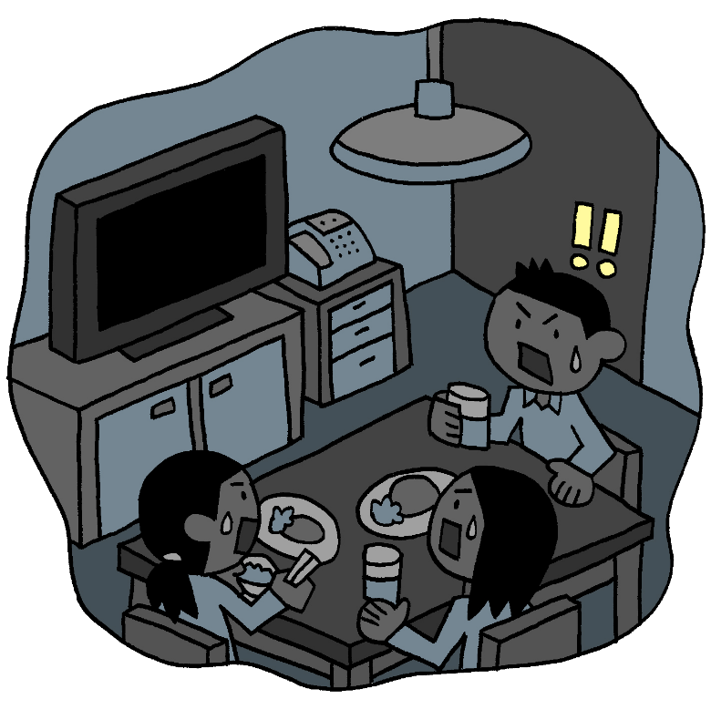 その間、電灯は消え、テレビは消え、入浴中にお湯は水になり、IHコンロは使えず、水は出なくなり、電子錠は使えずオートドアは開かなくなりました。