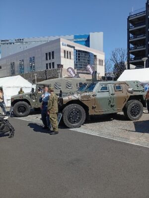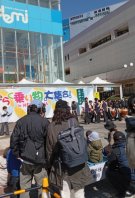 自衛隊車両やはしご車の体験乗車の他に、和太鼓でつながる「能登と大田区」として、輪島と大田区の団体による勇ましい和太鼓の音色が会場内に響いていました。